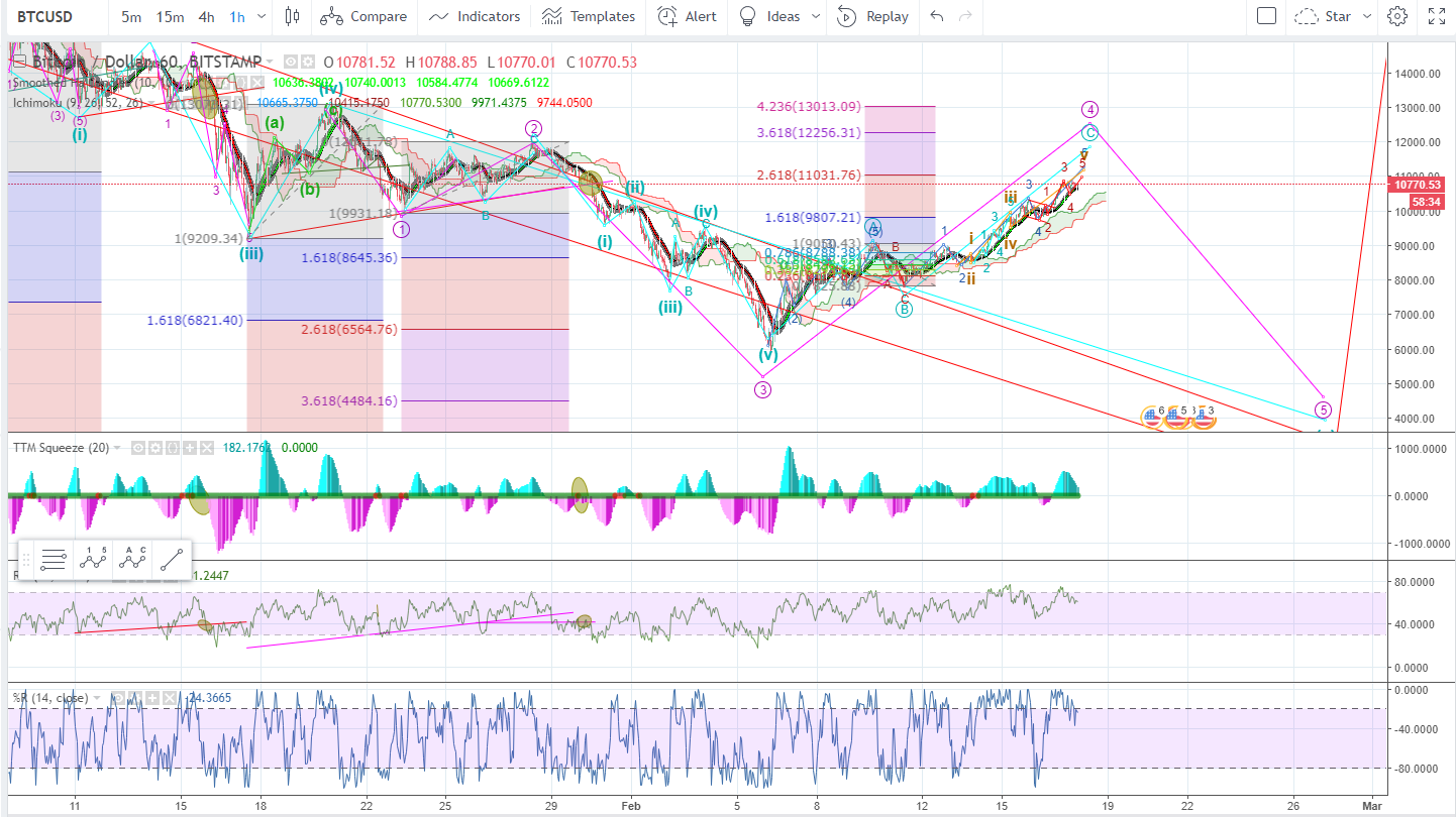 It hard to love this as a C wave that just goes on for days considering the time its taken and the comparison to the size of Wave 1 & 2. However, until this C was is invalidated at $12k we will accept it as a C Wave and play it for short scalps to the long side along the way. When it does hit $11k we expect to see a rejection at that price level if it does make it that high.